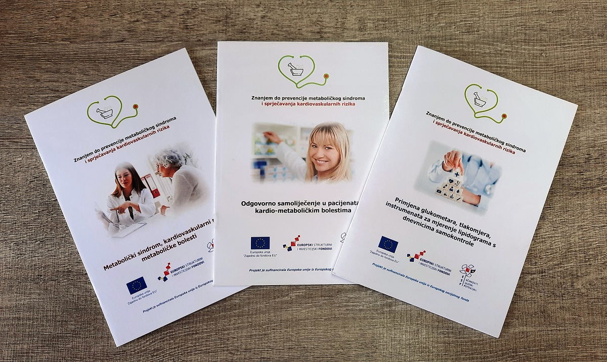 U okviru projekta „Znanjem do prevencije metaboličkog sindroma i sprječavanja kardiovaskularnih rizika‟ kojeg provodimo pristupilo se izradi i distribuciji brošura za edukaciju pacijenata i zdravstvenog osoblja o prevenciji metaboličkog sindroma i rizicima kardiovaskularnih bolesti, te o načinima sigurne samo-kontrole krvnog tlaka, šećera i lipida u krvi.